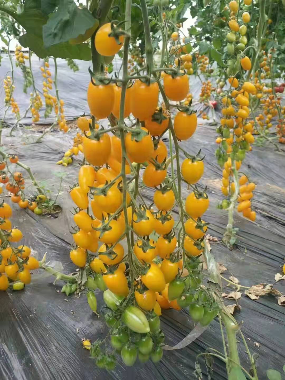 黃(huáng)色櫻桃番茄特性:無限生(δ£shēng)長(cháng)型,早熟,長(cháng)勢旺盛,≈♠β複狀花(huā)序多(duō),果種長(cháng),☆₽"尊片長(cháng)而舒展,果實黃(huáng)色魏麗(lì),長(chá≥×ng)橢圓形,單果重20克左右,整齊度好(hǎo),口感超甜,味美(měi)← ↑∑多(duō)汁,硬度高(gāo),耐運輸,不(bù)易裂果,産量高(g→★<āo)。适宜越冬,早春栽培。